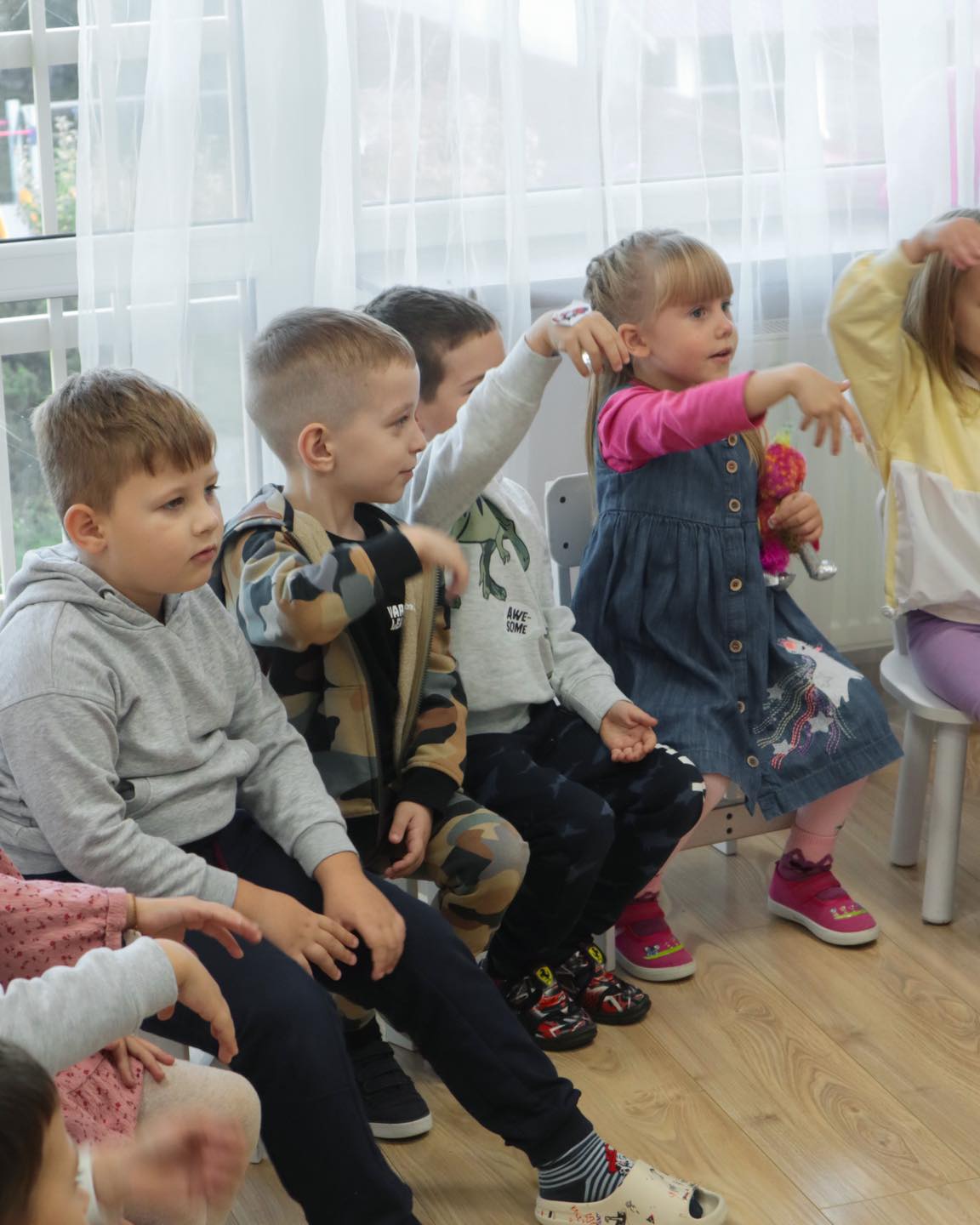 • З 09.30 до 10:00 дітки зустрічаються в танцювальній залі, де в них проходить ранкова руханка, ігри та привітання один з одним.
